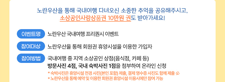 노란우산과 함께하는 국내여행 프리퀀시 이벤트 사전안내