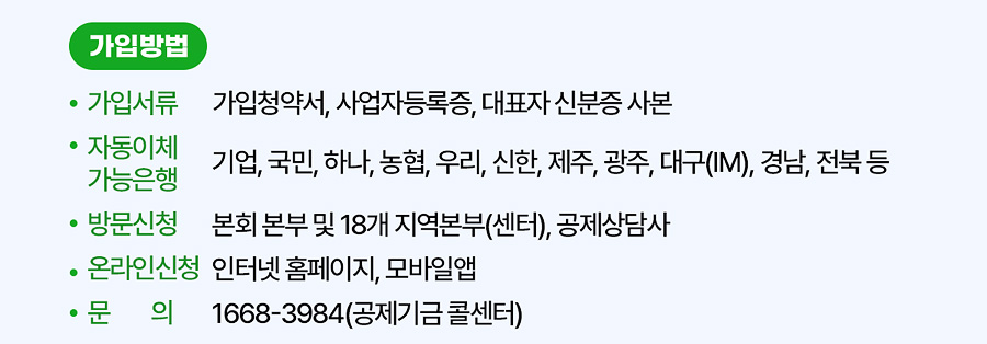 - - 중소기업공제사업기금과 관련하여 보다 자세한 사항은 약관을 참조하시거나 설명을 요구할 수 있습니다.
