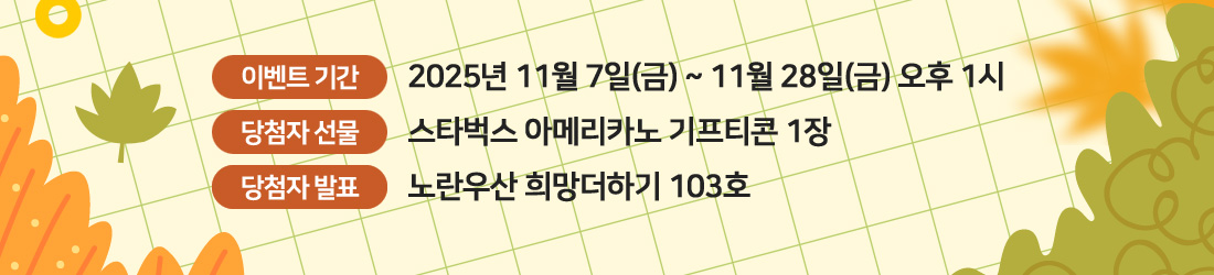 - 이벤트 기간: 22025년 11월 11일(금) ~ 11월 28일(금) 오후 1시