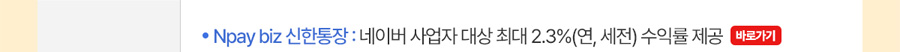 - Npay biz 신한통장: 네이버 사업자 대상 최대 2.3%(연, 세전) 수익률 제공