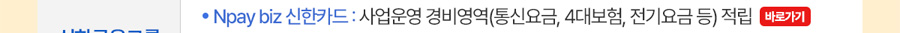 - Npay biz 신한카드: 사업운영 경비영역(통신요금, 4대보험, 전기요금 등) 적립
