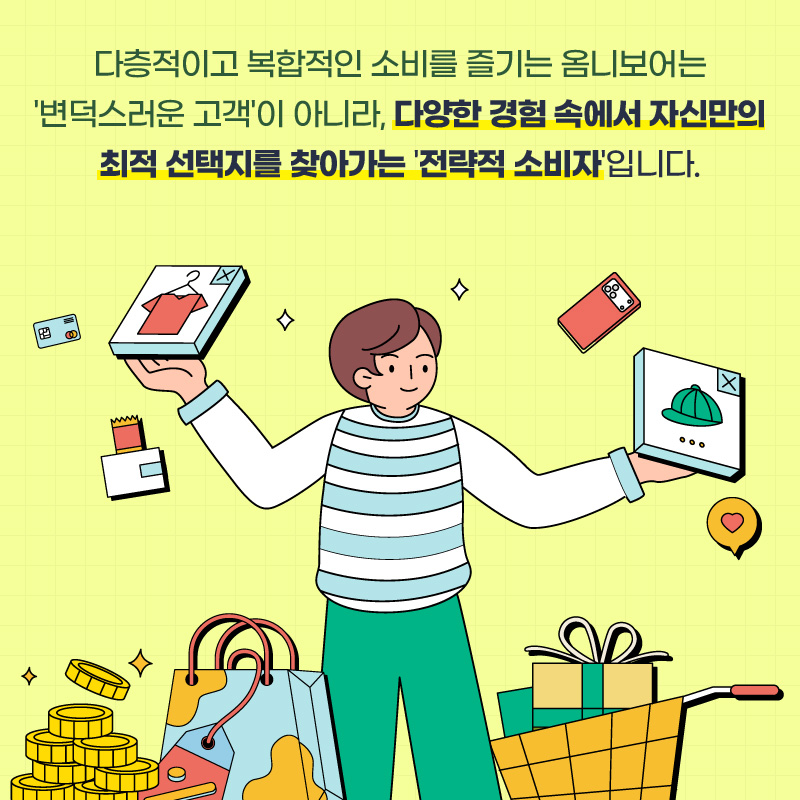 다층적이고 복합적인 소비를 즐기는 옴니보어는 '변덕스러운 고객'이 아니라, 다양한 경험 속에서 자신만의 최적 선택지를 찾아가는 '전략적 소비자'입니다.