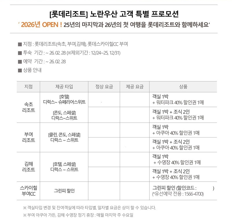 '2026년 OPEN! 25년의 마지막과 26년의 첫 여행을 롯데리조트와 함께하세요'