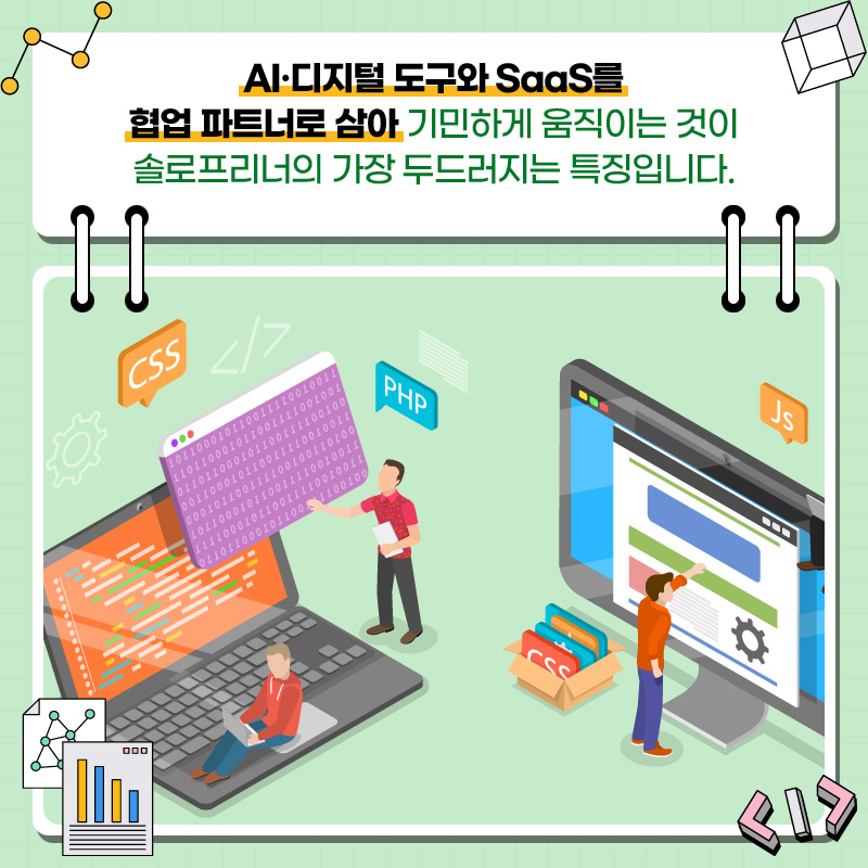 AI·디지털 도구와 SaaS를 협업 파트너로 삼아 기민하게 움직이는 것이 솔로프리너의 가장 두드러지는 특징입니다.
