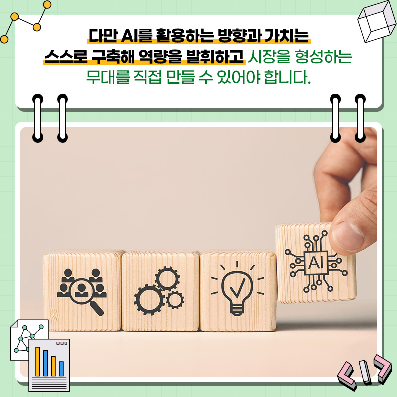 다만 AI를 활용하는 방향과 가치는 스스로 구축해 역량을 발휘하고 시장을 형성하는 무대를 직접 만들 수 있어야 합니다.
