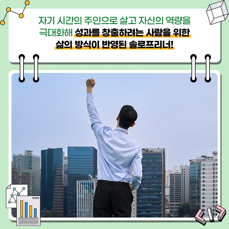 자기 시간의 주인으로 살고 자신의 역량을 극대화해 성과를 창출하려는 사람을 위한 삶의 방식이 반영된 솔로프리너!