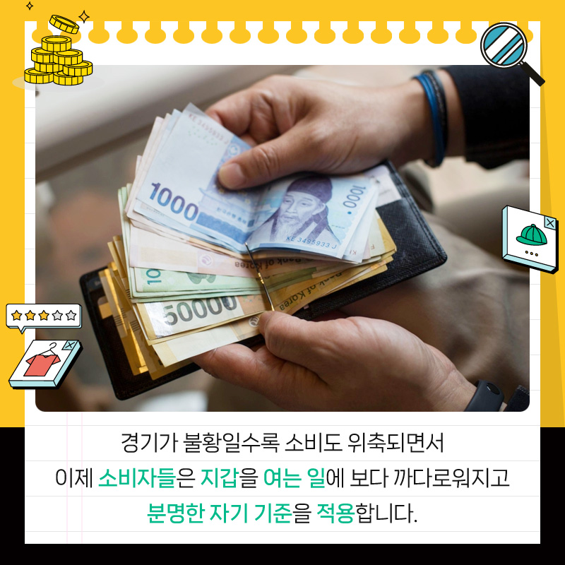 경기가 불황일수록 소비도 위축되면서 이제 소비자들은 지갑을 여는 일에 보다 까다로워지고 분명한 자기 기준을 적용합니다.
