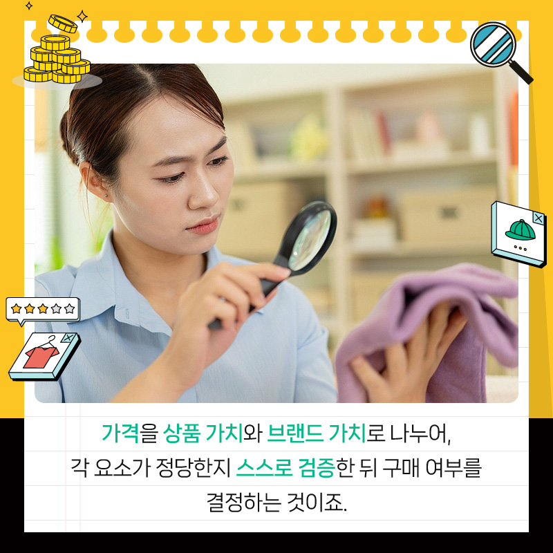 가격을 상품 가치와 브랜드 가치로 나누어, 각 요소가 정당한지 스스로 검증한 뒤 구매 여부를 결정하는 것이죠.