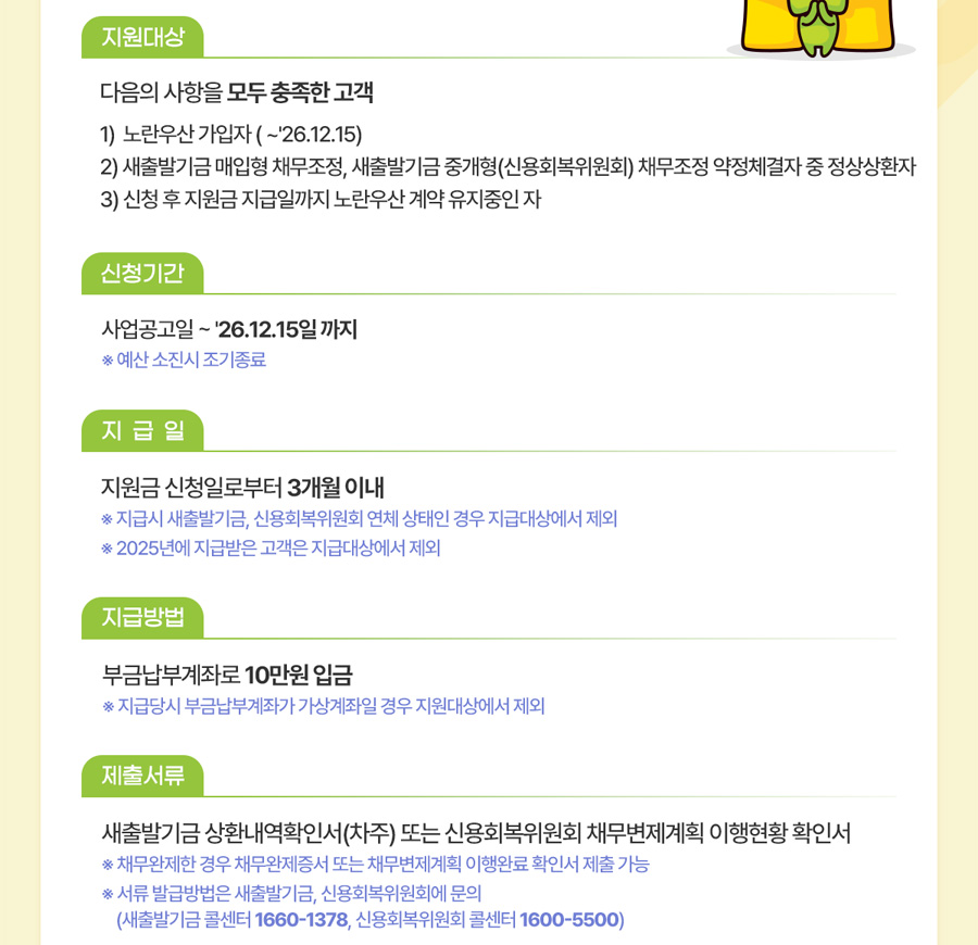 새출발기금 성실상환자 중 노란우산가입자에게 10만 원을 지원해드립니다!
